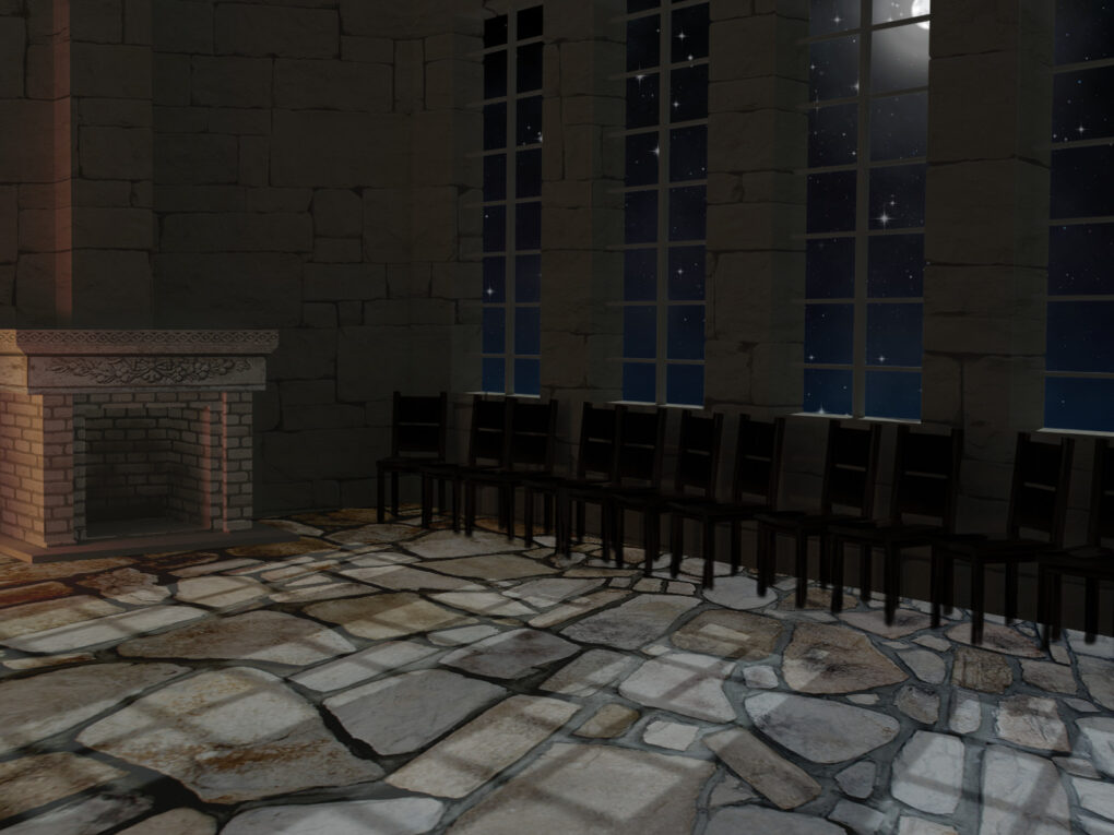 The one thing I knew how to do was the night sky with the moon and the stars. Unfortunately, that only makes about 10% of the image. I had no clue what to do with the floor, with the walls, with the fireplace – why on earth did I want a fucking fireplace to begin with?
